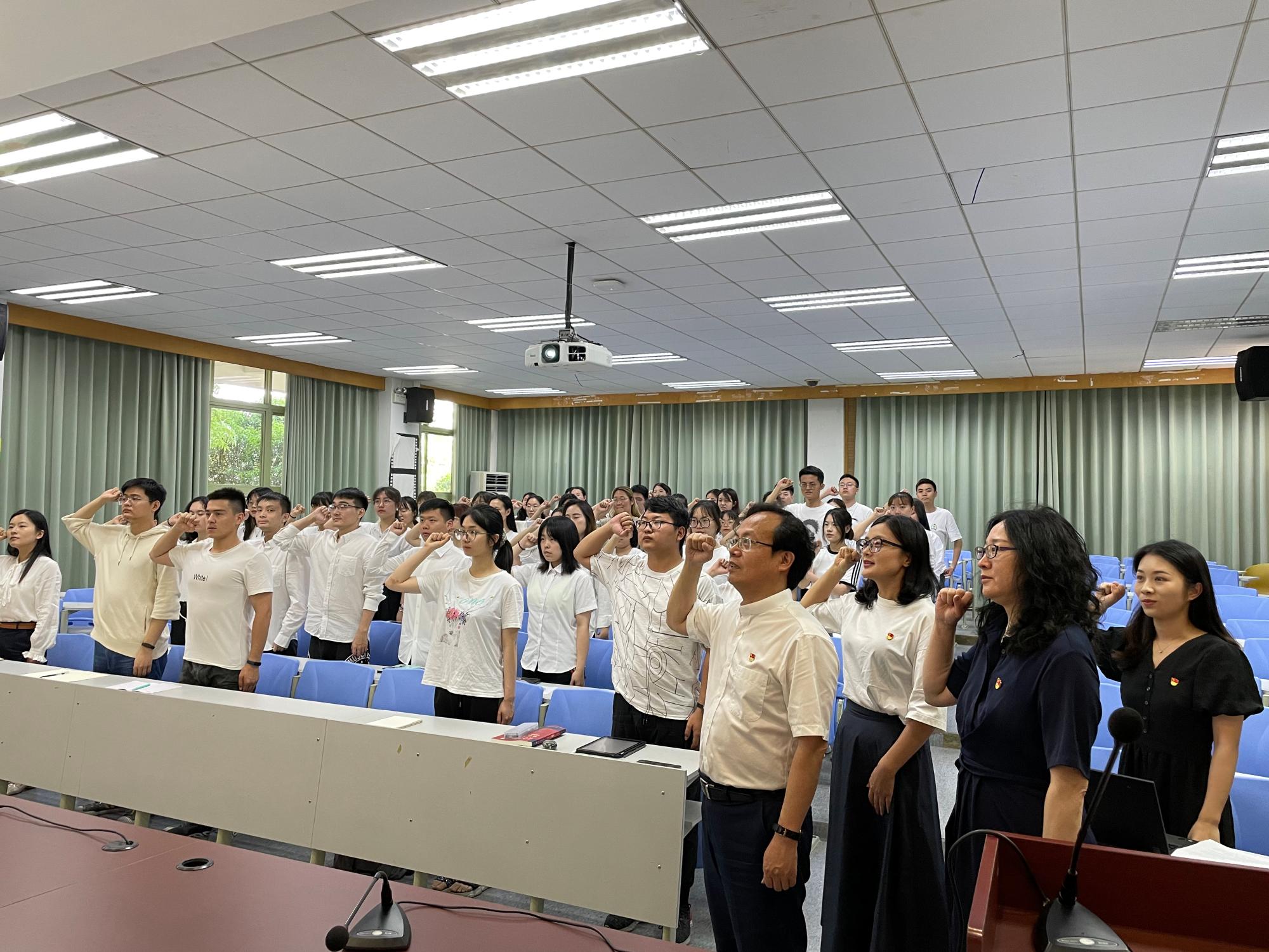 为丰富党史学习教育内涵,激励新发展党员以优异成绩迎接建党100周年,6月8日下午,公司党委在公司楼101报告厅举行2021年预备党员宣誓仪式。公司党委副书记黄建新出席并领誓,公司党委副书记王文婷、2021年新发展党员参加,仪式由公司党委书记朱丹主持。仪式在庄严的国歌声中拉开帷幕,朱丹宣读了53名新党员名单,黄建新副书记领誓,并为新发展党员佩戴党徽、发放党章。“我志愿加入中国共产党,拥护党的纲领,遵守党的章程,...
