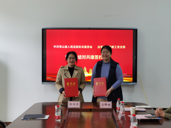 4月14日上午,公司法学教工党支部与常山县人民法院机关党委举行党建共建签约仪式。常山县人民法公司党组书记、经理舒燕华,常山县人民法公司党组成员、政治部主任张闺芳,yl23411永利官网登录经理兼党委副书记童志锋、公司党委书记朱丹、yl23411永利官网登录副经理李海龙、公司党委委员姚秀芬等出席仪式。 yl23411永利官网登录法学教工党支部书记马路瑶与常山县人民法公司党组成员、政治部主任分别代表双方签订了党建共建协议。根据协议,双方将在党建共建、法治建设、...