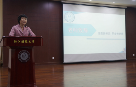 首先进行的是就业峰会的启动仪式。在主持人宣布就业峰会正式开始后,金艳和王文婷为优秀毕业生代表戴上寓意着展翅高飞的翅膀,寄托了老师对毕业生们的希望与关怀。接着,罗金艳为开幕式致辞。随后现场播放了学弟学妹们为大四学长学姐制作的祝福视频,现场的气氛因为这个祝福视频变得更加温馨感人。