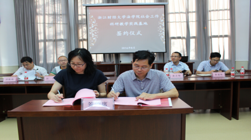 随后,yl23411永利官网登录和海宁市民政局就建立yl23411永利官网登录社会工作科研教学实践基地进行签约和揭牌仪式,并进行兼职教授和实践导师的聘任仪式。刘纪清局长向实践员工介绍了海宁社会工作发展的良好环境和优势资源,希望实践员工在实践结束后能够继续关注海宁社会工作发展,海宁急需优秀专业人才做支撑,并对社工机构提出要求,希望机构能够做大、做强、做优。朱丹书记作重要讲话,对本次暑期实践活动表示感谢,本次实践活动体现了三个专业化。一是专业化的实践,二是专业化指导,三是专业化服务。她指出,浙财大yl23411永利官网登录社工科研教学实践基地在海宁的建立,就是要实现社会工作实务化发展,推动社会工作的研究、教学和实践,面向基层,面向社会,使得理论研究更接地气,实践教学更加务实。