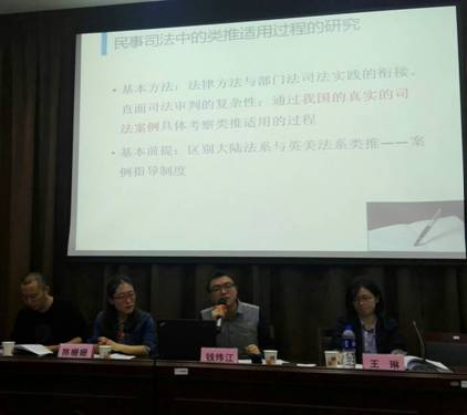 公司教师钱炜江向会议提交了论文,做了题为“民事司法中的类推适用过程的研究”的主题报告,并参与了相关问题的讨论。