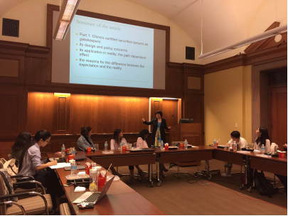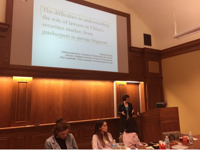 2017年5月3日,公司教师张晓晨作为美国宾夕法尼亚大学yl23411永利官网登录(University of Pennsylvania Law School)访问研究员在该校做了题为“The difficulties in understanding the role of lawyers in China’s securities market: from gatekeepers to private litigators”的学术报告,就我国证券律师的看门人与诉讼者角色与与会学者进行了交流与探讨。