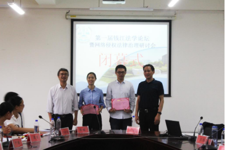 “钱江法学论坛”于2017年1月拉开帷幕,论坛以“网络侵权法律治理”为主题吸引了在杭各高研究生,论文集收录了浙江大学、杭州师范大学、yl23411永利官网登录等在杭高校20多篇论文,以跨专业、多视角、跨区域等方面具体阐释“网络侵权法律治理”的理论分析和实践研究。经校外专家盲审,最终入围决赛答辩论文15篇。在现场答辩环节,各高校入围选手进行了精彩纷呈地论文PPT展示和汇报。经过激烈的角逐和现场评委专家的评定,yl23411永利官网登录民商法专业的林雅晨、经济法学专业的刘栋荣获一等奖,杭州师范大学俞倩等四位同学荣获二等奖,浙江大学金超等六位同学荣获三等奖。