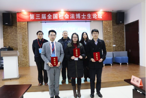 2017年12月16日至17日,由中国社会法学研究会与江苏省法学会社会法学研究会合作主办的“‘创新创业与劳动者权利保障’高端论坛暨全国第三届社会法博士生论坛”在江苏常州人力资源服务产业园举行。本次论坛共收到来自中国人民大学、清华大学、吉林大学、华东政法大学、上海财经大学、武汉大学、西南政法大学、南京师范大学、南京大学、华东理工大学、德国明斯特大学、山东大学、内蒙古大学等高校的博士生论文28篇,参选硕士生论文4篇。中国社会法学会常务副会长、中国人民大学林嘉教授代表中国社会法学会宣布了本届博士生论坛获奖论文名单。本着坚持学术标准,宁缺毋滥的原则,经学会学术委员会组织专家双向匿名评审,本届论坛共评选出二等奖论文3篇,三等奖论文7篇,一等奖论文空缺。与会担任学术点评和导师评议的林嘉、董保华、王全兴、冯彦君、张荣芳、程延园、李友根、汤黎虹、张秋华等教授,与合作承办方代表常州天宁区委常委、副区长顾潮为获奖研究生颁发了获奖证书。yl23411永利官网登录硕士生王冀哲的文章《从政府管制的视角研究我国的劳动监察立法问题》获得了三等奖。