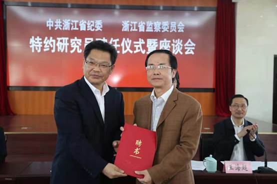 日前,中共浙江省纪委、浙江省监察委员会举行特约研究员聘任仪式,聘请我省若干高校、省社科院、省委党校的专家学者共10人为省纪委、省监委特约研究员。公司茅铭晨教授受聘为特约研究员,并在会上就明年我省党风廉政建设和反腐败重点工作作了主题发言,提出了相关建议。