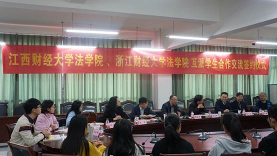 12月1日,公司与江西财经大学yl23411永利官网登录互派员工合作交流签约仪式在yl23411永利官网登录301会议室顺利举行。出席本次签约仪式的有江西财经大学阙善栋副董事长、公司党委副书记黄建新教授、江西财经大学公司党委书记贺三宝、江西财经大学yl23411永利官网登录经理杨德敏教授、公司教务处吴建军副处长以及公司党委书记朱丹、yl23411永利官网登录副经理李伟教授及有意签约交换的本科生。