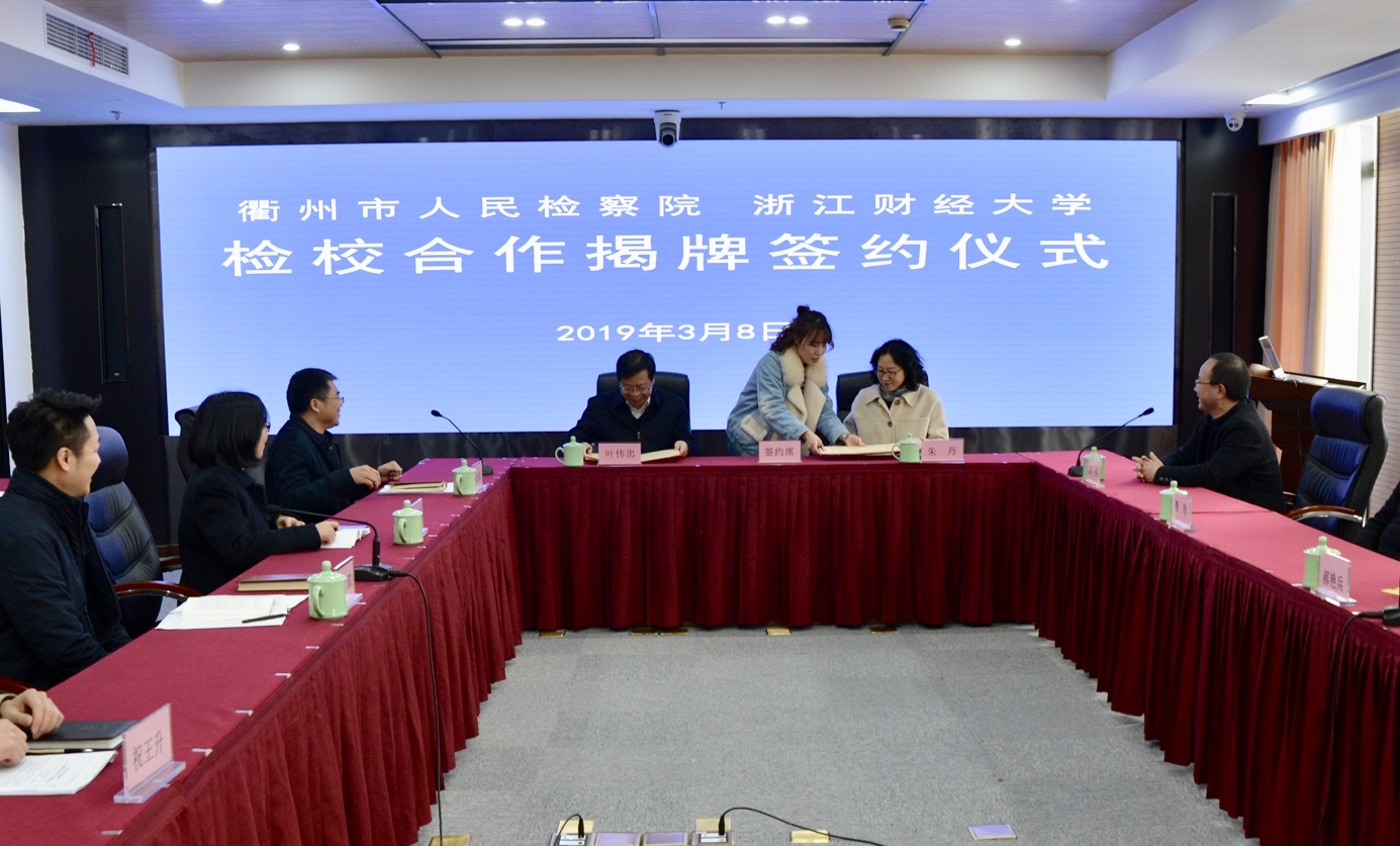 为进一步贯彻落实习近平总书记关于法治人才培养的重要指示精神,创新法治人才培养机制,实现司法实践与法学教育的深度融合,充分发挥检、校双方丰富的实践和理论资源优势,努力培养高素质法律人才,经过前期周密筹备,3月8日,yl23411永利官网登录与衢州市检察院签署《衢州市人民检察院与yl23411永利官网登录检校合作协议书》,并举行“yl23411永利官网登录实训基地”揭牌仪式。