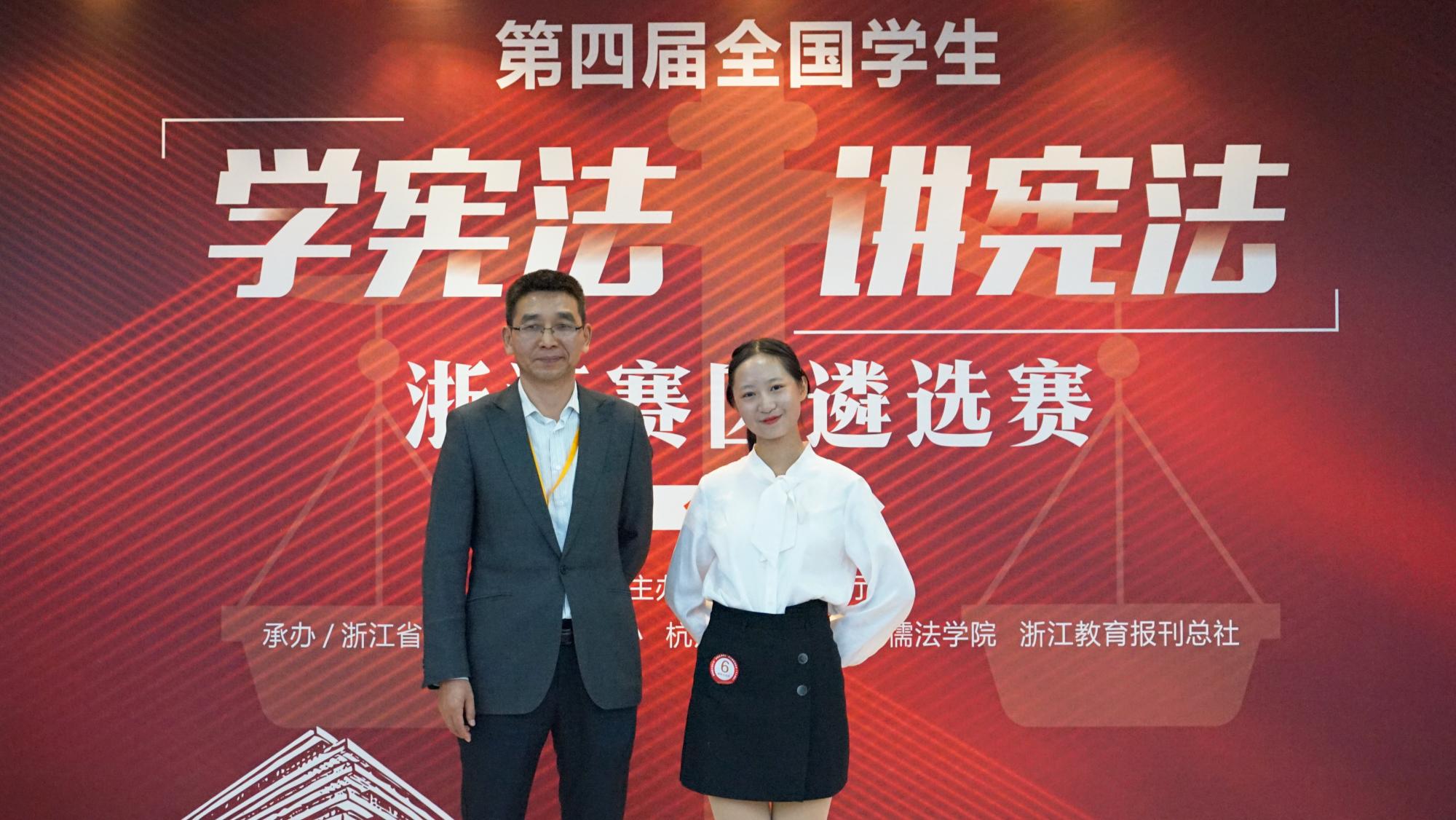10月19日,第四届全国员工“学宪法讲宪法”活动浙江赛区比赛在杭州师范大学师举行,本次比赛由浙江省教育厅主办。yl23411永利官网登录2017级本科生刘玲妍、2019级本科生林汶璇在全省高校近百名选手中脱颖而出,分别斩获知识竞赛、演讲比赛大学组一等奖。yl23411永利官网登录王俊老师获评优秀指导老师一等奖。