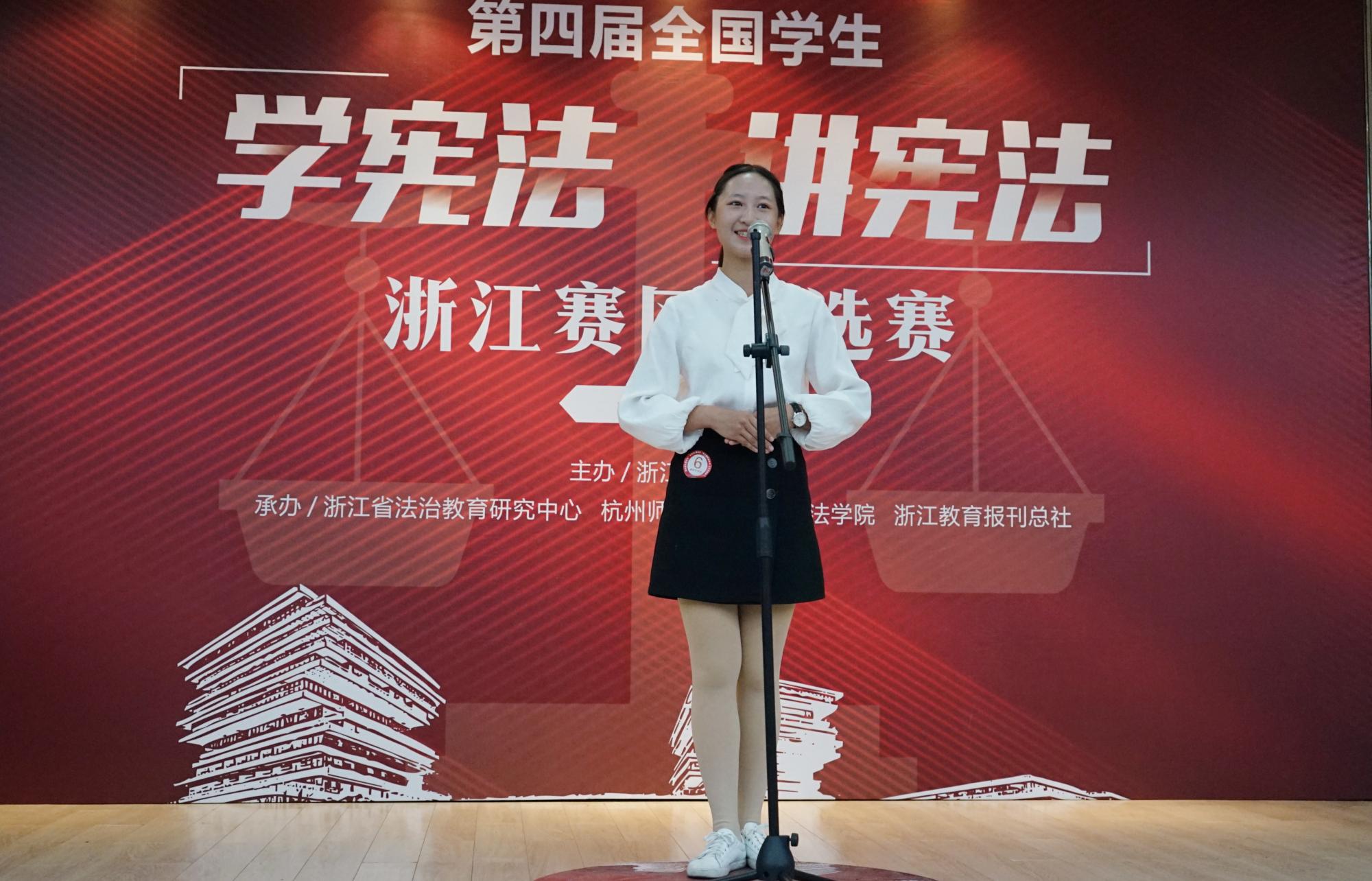 法学院团委在公司党委宣传部的指导下,于今年6月份组织校内第二届“学宪法讲宪法”活动,经过公司选拔和省初赛筛选,选送yl23411永利官网登录本科生代表yl23411永利官网登录参加省赛。比赛中,刘玲妍同学积极应对,一度连续三次抢得答题机会并回答正确得分,精彩表现获得现场阵阵掌声,最终获得知识竞赛一等奖。林汶璇同学紧紧围绕宪法的主题,生动地讲述了《中华人民共和国宪法》的历史渊源和近代发展,探索了《中华人民共和国宪法》联接浙江发展的有效途径。饱满的感情、流利的表达、较强的现场感染力,让林汶璇同学在所有选手中脱颖而出,以第四名的优异成绩斩获一等奖。