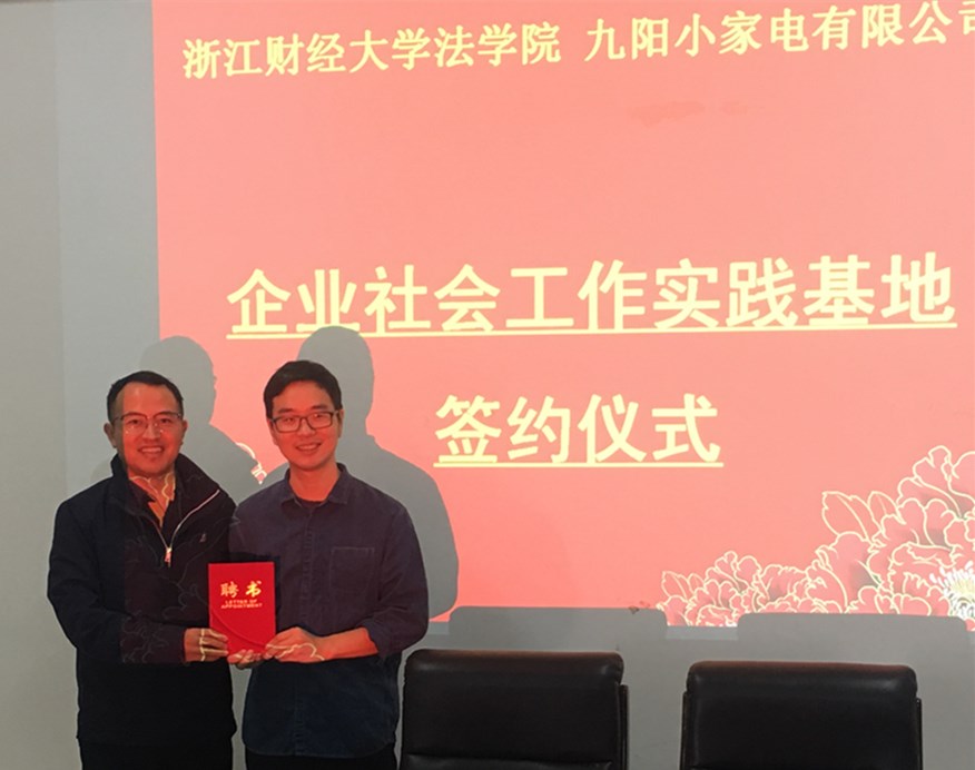 2019年10月28日,为推进“政校企社行”五位一体协同育人平台建设,加快企业社会工作实践基地建制化发展,创新企业社会工作人才培养机制,yl23411永利官网登录与杭州九阳小家电有限公司签署了《yl23411永利官网登录与杭州九阳小家电有限公司企业社会工作实践基地》协议,此协议致力于企业社会工作实践课程、员工参与企业公益活动等方面的合作。九阳股份公益部总监、杭州九阳小家电有限公司指定出席人黄晖,公司党委书记朱丹、副经理童志锋、社会工作系主任陈建胜等参加了签约仪式。