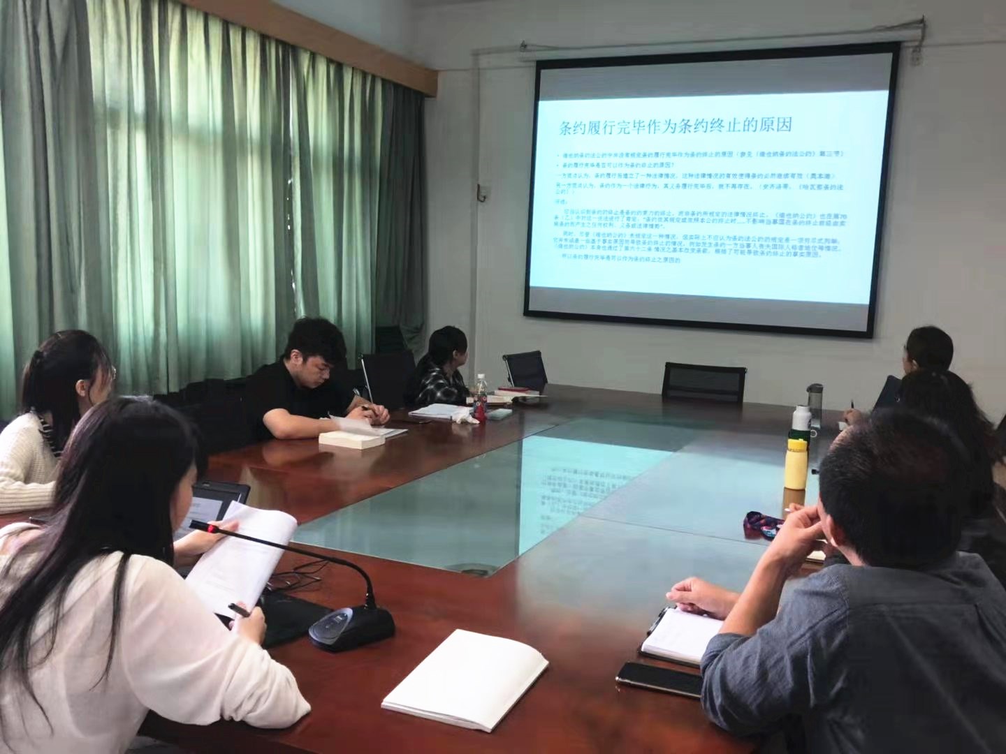 国际法系师生就研读《条约法概论》过程中的心得体会做了深入交流,就条约终止、条约与强行法规范、条约解释等问题进行了发言与讨论。刘勇老师提出,目的解释在国际仲裁领域很有可能会导致条约的扩大解释,应当对其适用进行审慎考察。褚童老师提出,可以通过对国际法院案例的分析,明确强行法的识别方法。