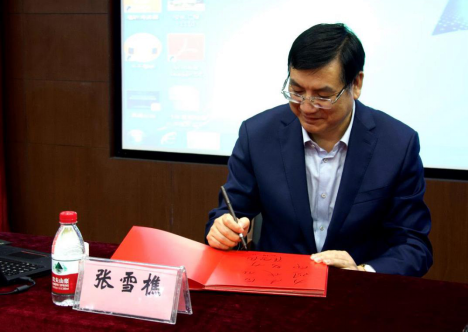 (张雪樵副检察长受邀在公司嘉宾签名册上题字:“为法治现代化而努力”)