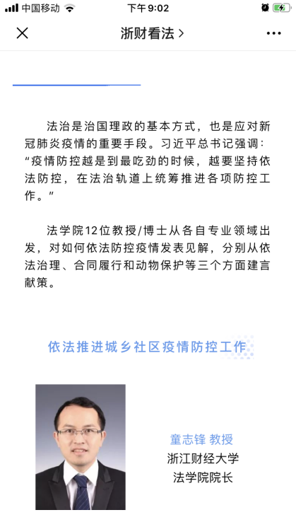 教工党员积极发挥法学和社会工作学科优势,yl23411永利官网登录经理童志锋、yl23411永利官网登录教授委员会主任委员田东奎、yl23411永利官网登录副经理唐勇、“双带头人”工作室负责人、法学教工党支部书记李森等十位党员分别从“依法推进城乡社区疫情防控工作”、“依法防疫,构建文明和谐社区”、“疫情防控要关注弱势群体的权力保障”、“完善野生动物保护法律法规”等各方面建言献策,为社会各界思考疫情防控、推进依法防疫工作等提供参考。