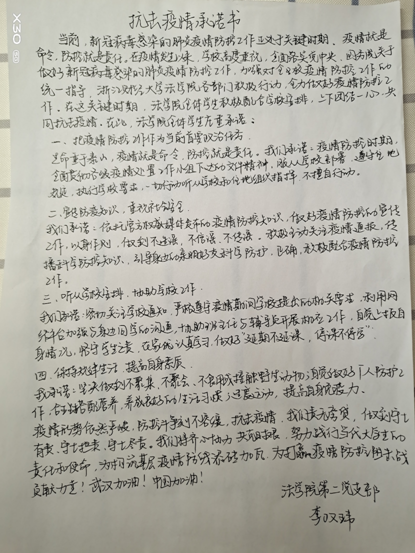 (本科生第二党支部抗“疫”承诺书)