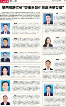 由浙江省法学会组织的“浙江省突出贡献中青年法学专家”评选活动每五年举行一次。今年共有10位浙江省中青年法学专家入选,他们都是近些年来我省在法学理论研究、法律实务实践层面有卓越建树,为“法治浙江”建设作出突出贡献,在国内外法学界颇具影响力的中青年法学专家代表。
