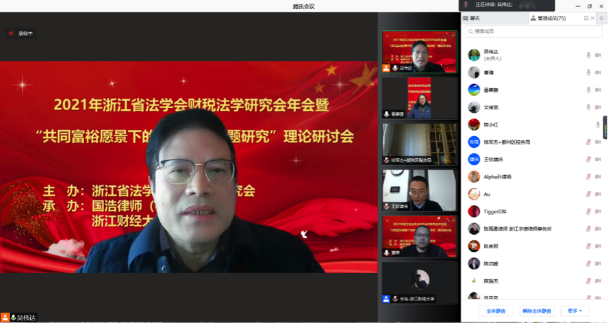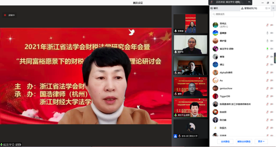 2021年12月19日,浙江省法学会财税法学研究会主办,国浩律师(杭州)事务所许玉灵律师团队、yl23411永利官网登录承办的浙江省法学会财税法学研究会2021年年会暨“共同富裕愿景下的财税法律问题研究”理论研讨会在线召开。