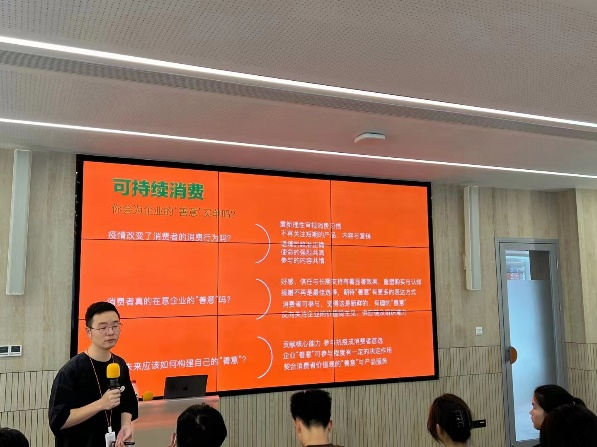 九阳在公益项目和国家重大灾害中的付出向我们展现了企业慈善将产品与慈善救助融合的特色和企业的担当、责任感与公益情怀。同时,黄秘书长抛出了“可持续消费——你会为企业的善意买单吗?”引发了同学们的思考。