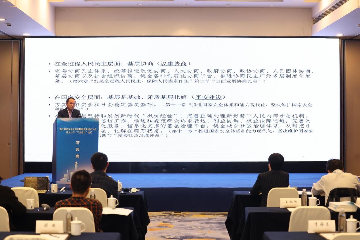 11月20日,浙江省法学会社会治理研究会成立大会暨2022年“平安浙江”论坛在余杭区举行。省委政法委常务副书记朱晨,浙江警察公司党委书记蒋建森、杭州市委常委、区委书记刘颖出席并致辞。
