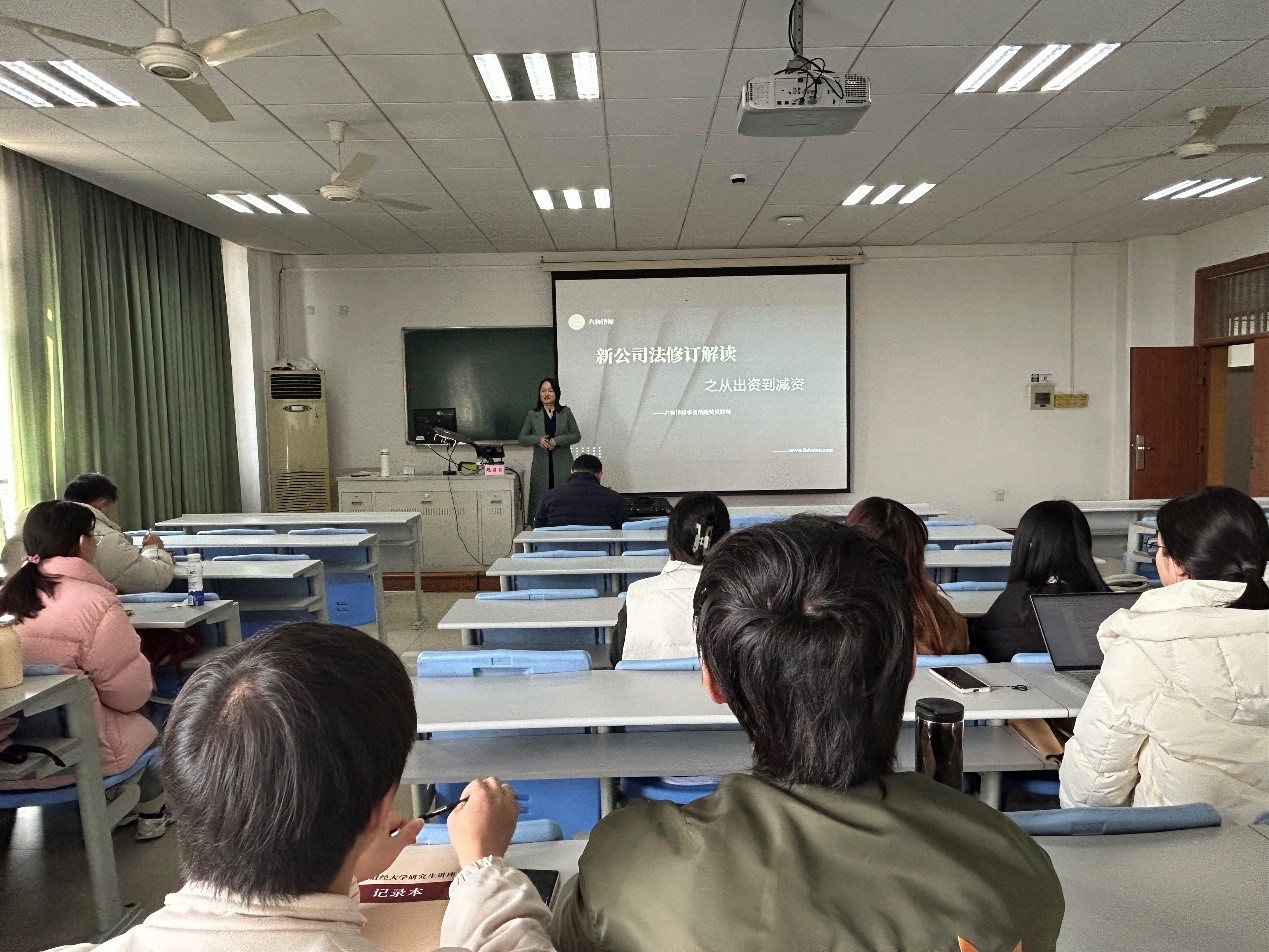 讲座中,鲍律师首先简单介绍了相关法律工具与法律文书格式,接下来着重介绍了公司法中出资与减资相关内容。通过法条引用、思维导图、分类介绍等形式,详细讲解了新修订公司法中的公司出资制度、股东失权制度、未按到期出资与违法减资等情况下的法律责任与后果、减资原因、减资流程、风险提示、减资方式等内容。鲍律师利用丰富的实践经验为同学们带来了一场精彩的讲座,使同学们接触到了新的知识,也对非诉讼法律事务有了更浓厚的兴趣。