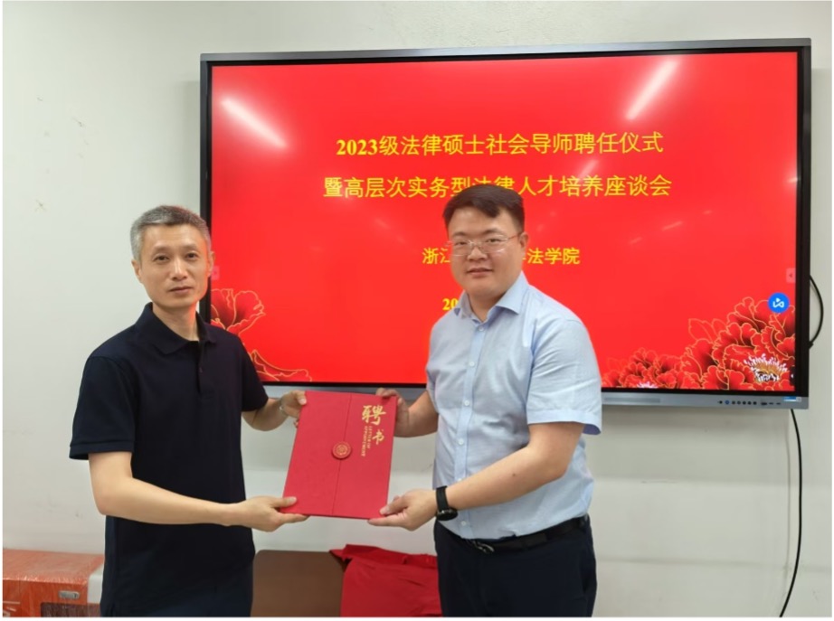 2024年5月26日,yl23411永利官网登录举行2023级法律硕士社会导师聘任仪式暨高层次实务型法律人才培养座谈会。公司党委书记丁洪、副经理李海龙等出席会议,来自浙江省高级人民法院、阿里巴巴集团、淘宝天猫商业集团、浙江浙联律师事务所、北京观韬中茂(杭州)律师事务所、浙江天册律师事务所、浙江六和律师事务所、北京德恒(杭州)律师事务所、浙江浙杭律师事务所、北京天驰君泰(杭州)律师事务所、浙江泰杭律师事务所、北京盈科(杭州)律师事务所、上海邦信阳(杭州)律师事务所、浙江律匠律师事务所、浙江仁谐律师事务所、浙江新台州律师事务所、浙江圣银律师事务所、浙江优穗律师事务所、浙江杭北律师事务所、浙江九玄律师事务所等实务部门的社会导师以及2023级全体法律硕士专业研究生共计80余人参加本次会议。本次聘任仪式和座谈会由yl23411永利官网登录法律硕士中心主任冯姣副教授主持。