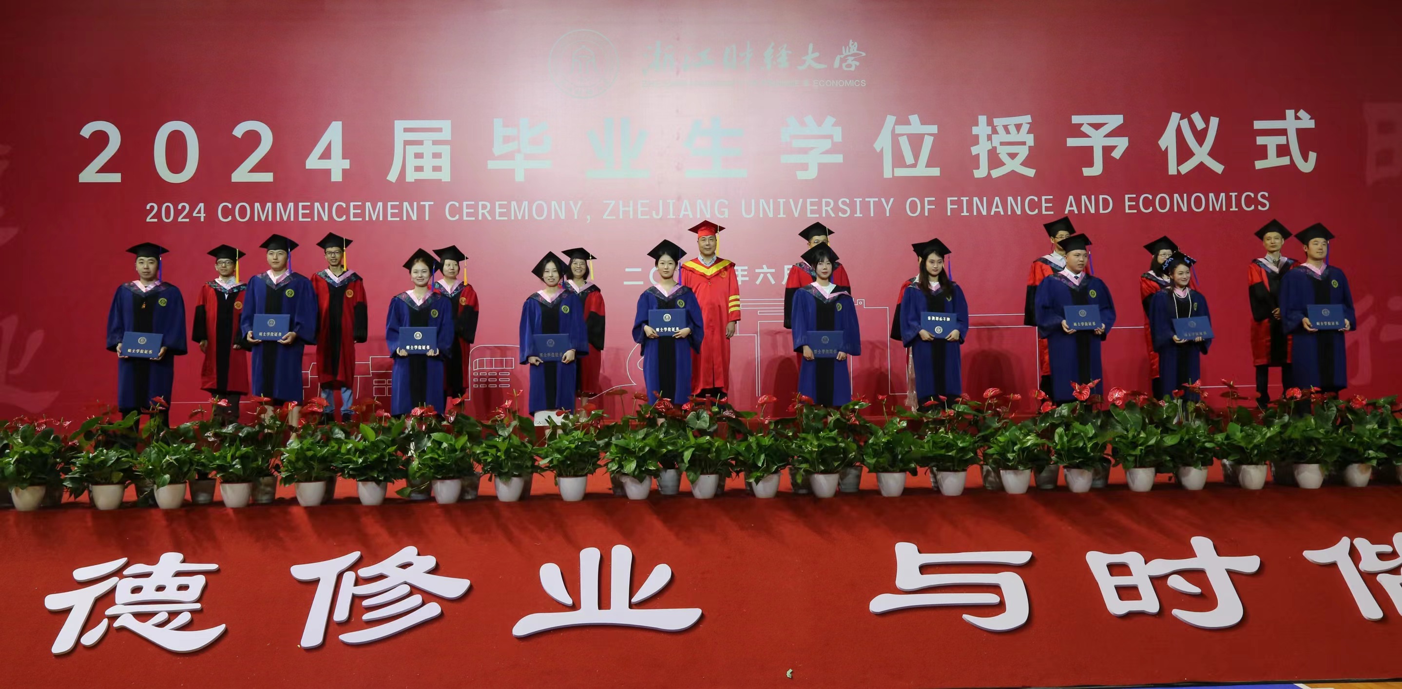 拨穗仪式在温暖的旋律中开始,每位同学带着胜利的喜悦同导师握手谢礼,导师亲切为同学们拨穗正冠,祝贺同学们获得学位。11位省级优秀毕业生上台接受表彰。