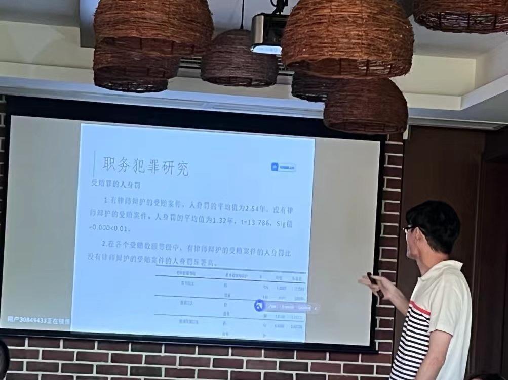 董倞乔老师在讲座中报告了自己近期的研究动向,展示了职务犯罪司法场域研究领域的相关内容。董倞乔老师通过对中国裁判文书网抓取的四千余件受贿案件判决中犯罪事实认定与判罚结果的量化分析,探讨了律师参与以及认罪悔罪表现对于职务犯罪量刑的影响。