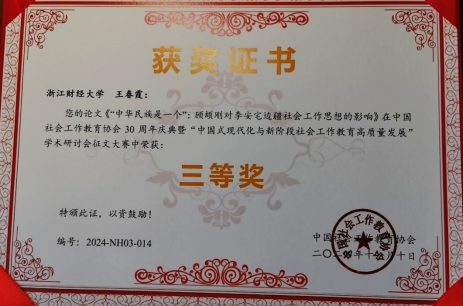 公司王春霞副教授应邀参加会议,并在分论坛上做了题为《“中华民族是一个”:顾颉刚对李安宅边疆社会工作思想的影响》的学术报告,探讨了在抗战建国的时代背景下,顾颉刚提出“中华民族是一个”,试图创建单一民族的现代民族国家型式,这一理想对李安宅的边疆社会工作思想产生重要影响。该论文也在此研讨会征文大赛中荣获三等奖。