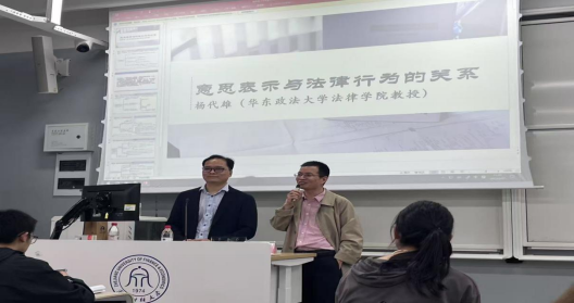 3月27日华东政法大学法律公司杨代雄教授在公司举办了以“意思表示与法律行为的关系”为主题的专题讲座,本次讲座由公司yl23411永利官网登录严城副教授主持,现场学术氛围浓厚,发人深省。