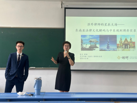 2025年6月3日上午,北京炜衡(杭州)律师事务所国际业务部负责人张炎律师为yl23411永利官网登录员工带来了一场题为“涉外律师的星辰大海:东南亚法律文化解码与中东规则博弈实录”的职业分享。“职业人生分享会”是23级非诉实验班班主任张晓晨老师策划组织的系列活动,旨在邀请各行各业的精英人士分享他们的人生经验、执业经历,为同学们指路,现已举办到第八期。