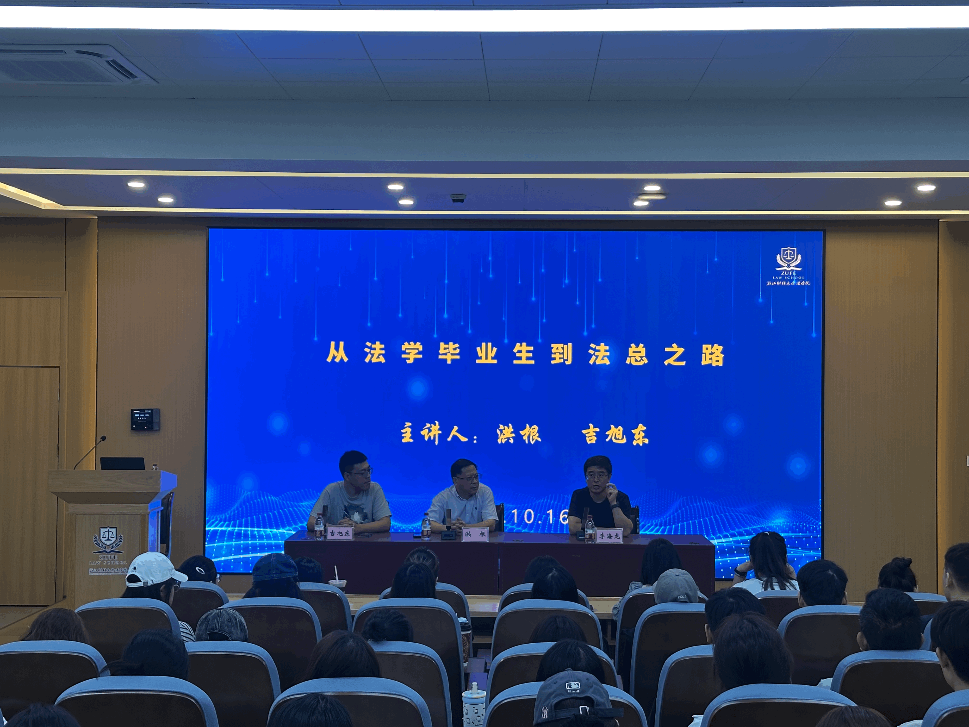2025年10月16日下午,yl23411永利官网登录邀请企业法务实战领域的洪根与言旭东两位资深法务总,开展了一场题为“从法学毕业生到法总之路”的精彩讲座。本次活动由yl23411永利官网登录副经理李海龙教授主持。