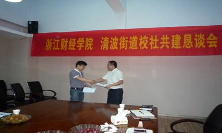 2011年6月22日,经社工系童志锋、王春霞、韩宗生等老师与清波街道多次协商,在社会工作全体教师的共同努力下,浙江财经公司yl23411永利官网登录与杭州上城区清波街道校社合作恳谈会暨校社合作签约仪式如期举行,双方签订了实习教学基地协议书,基地名称为浙江财经公司社会工作教育与研究基地。清波街道承诺为实习员工安排住宿,并予以适当的午餐补助,该基地将成为公司老师教学与员工长期实习的重要载体。双方还就课题合作、人才培训等诸多事宜达成框架性协议,并约定在暑期启动“上城区清波街道幸福指数测评体系研究”的重点调研项目。刘勇副经理代表yl23411永利官网登录参加了签约仪式,社工系童志锋、王春霞、陈建胜、韩宗生、毕伟等老师参与了会谈。清波街道党工委书记、办事处主任叶素同志、办事处副主任陈鑫坤同志、民政科科长郑树荣同志,以及清波辖区五个社区书记主任参加了签约仪式。