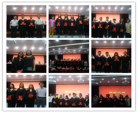 接着是荣誉表彰环节,经理助理、社工系主任童志锋宣读了司考优秀班级、优秀寝室、考研优秀班级、优秀个人名单;副经理李政辉宣读2015届毕业生获得毕业证书、学位证书名单;副经理蒋铁初宣读省、校、院三级优秀毕业生名单;党总支副书记罗金艳宣读2015届员工联络员名单。随后,主席台领导及出席的教师分别向获奖的同学们颁发了荣誉证书和聘书。