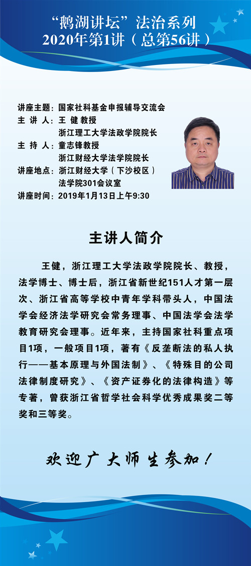 “鹅湖讲坛”法治系列2020年第1讲(总第56讲)浙江理工大学法政公司经理王健教授