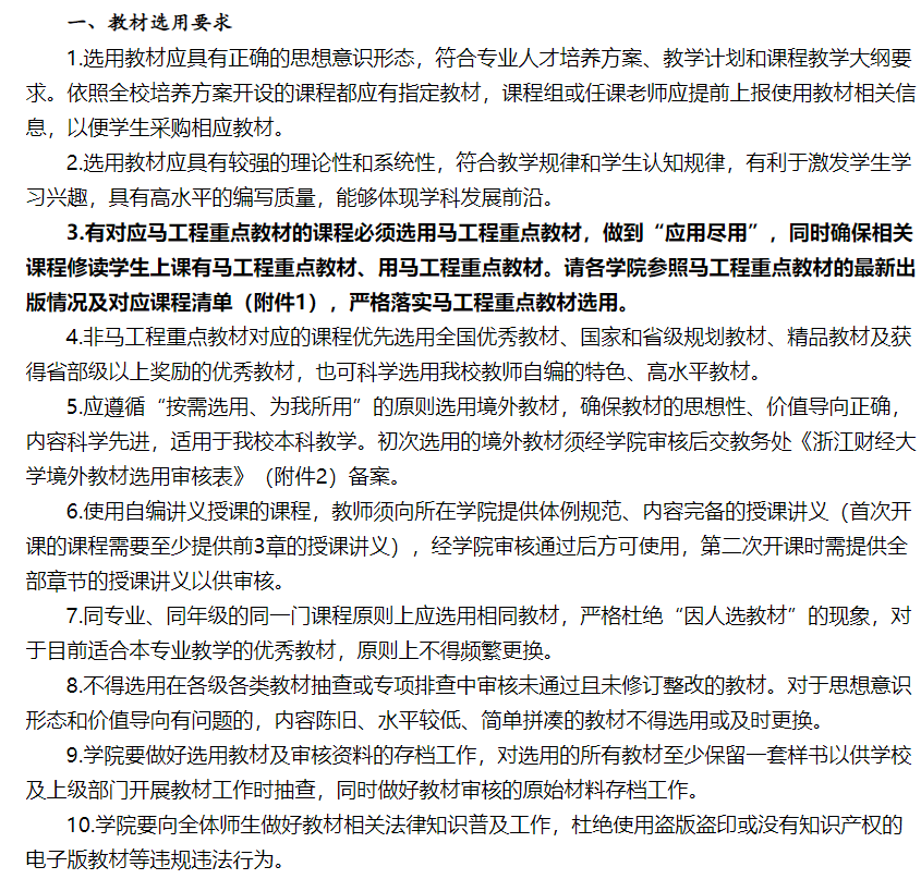 根据教育部《普通高等公司教材管理办法》(教材〔2019〕3号)、《关于高校哲学社会科学相关专业统一使用马克思主义理论研究和建设工程重点教材的通知》(教高函〔2013〕12号)及《yl23411永利官网登录本科生教材选用管理办法》(浙财大〔2017〕203 号)等文件精神,yl23411永利官网登录完成2023-2024-1本科生教材选用工作,现将统计结果公示三天(6月15日、6月16日、6月19日)如有问题,请拨打:86735748.