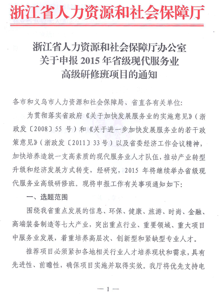 关于转发《关于申报2015年省级现代服务业高级研修班项目的通知》的通知