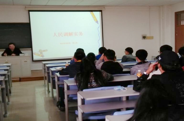 接下来,蔡心扬处长为社工专业的员工讲解和介绍了《中华人民共和国人民调解法》的渊源和发展历程,让同学们了解到现阶段中国各类调解的侧重点和未来的发展的趋势,鼓励同学们积极参与到人民调解的工作中去。同时也给同学们介绍和分析了社会工作专业与人民调解之间的联系和区别,以及调解过程中的法律依据和沟通技巧。最后,蔡处长与老师和员工进行了积极的互动。老师同学们各自讲述了自己的疑问,蔡处长针对不同的问题都做了精确的解答,也让同学们进一步的认识到了社工专业学习人民调解实务的必要性。