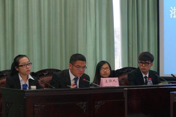 决赛围绕“陈德明、周晓白与怡人风景区侵权责任纠纷上诉案”展开。经过了初赛的历练,参赛队员们显得更加自信、果敢,赛场上也更好的发挥了自己的专业技能。上诉方紧紧抓住了上诉人之子陈真落水的细节进行仔细盘问和剖析以证明怡人风景区有管理不当之处,被上诉方则从上诉人之子上学时间逗留风景区以及上诉人长时间没有找寻孩子等事实证明上诉人存在监护过失。双方从法理和情理上对案件进行了准确到位的拿捏。庭审过程中,更有队员情到深处,声泪俱下,逼真地展现了法庭庭审的真实风采。