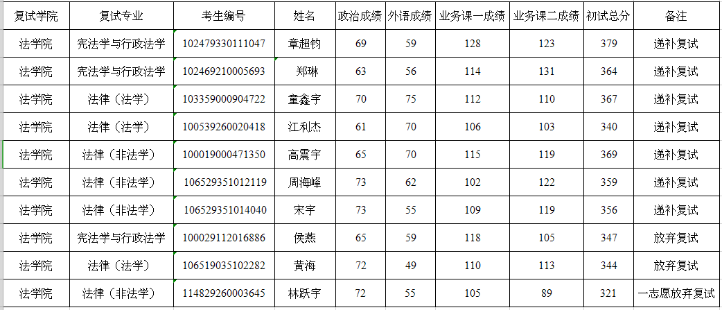 2019年yl23411永利官网登录校外调剂递补复试名单