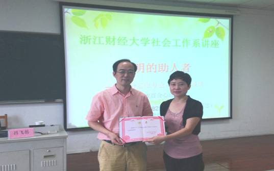 2014年9月18日上午,宁波百合心理与社会工作服务中心吕飞岳主任应邀为公司员工做了一场题为“高明的助人者—社会工作专业员工成才漫谈”的讲座。讲座由yl23411永利官网登录社会工作系副主任陈建胜副教授主持,王春霞副教授、王婷博士出席了讲座。在讲座开始之前,公司党总支副书记罗金艳老师为吕飞岳主任颁发了yl23411永利官网登录兼职教授聘书。