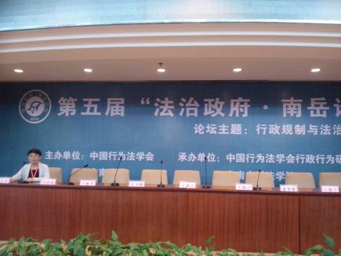 2013年11月2日,由中国行为法学会、中南大学主办,中国行为法学会行政行为研究会、中南大学yl23411永利官网登录共同承办的第五届“法治政府·南岳论坛”在湖南省韶山市举行。公司李春燕教师应邀参加会议,并就行政授权的法律规制问题做主题发言。