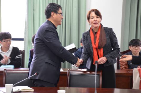 讲座中,Worthington教授从英国最新的三大案例入手详细阐述了英国公司法中股东的有限责任、揭开公司面纱等有关公司法人独立地位的法律保护,并就两国公司法在对股东权利保护上的异同与与会师生进行了热烈的讨论。