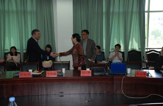 讲座前,先进行了兼职教授的聘任仪式。王宇航副书记为王广辉教授颁发浙江财经公司兼职教授聘书。