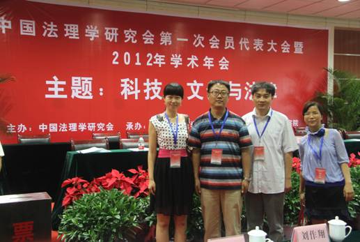 中国法理学研究会第一次全国代表大会于2012年7月7日至8日在西北政法大学召开,本次大会为法理学研究会作为全国一级学会的成立大会,来自全国140余个法律院校的240名代表到会,公司李占荣教授、魏腊云副教授、杨知文博士、金梦博士应邀出席会议,围绕“科技、文化与法律”主题参加了研讨。