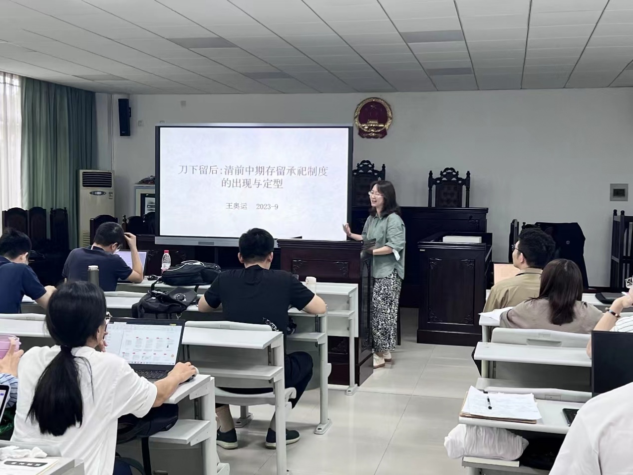 在会议第四阶段,王奥运博士做了《刀下留后:清代存留承祀制度的出现与定型》的主题报告。她主要介绍了清前中期存留承祀制度的立法演变过程,并详细分析了该制度与存留养亲制度在适用范围、适用条件、程序、适用结果等方面的区别与联系。