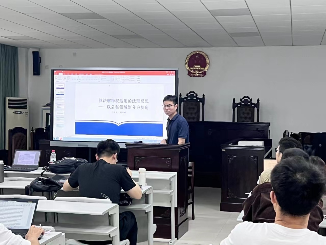 在会议的第三阶段,刘佳明博士做了《算法解释权适用的法理反思》的主题报告。他从公私两域的角度出发对算法解释权的适用进行了不同厘定,认为关于算法解释的权益主体、权利来源和解释内容上,信息处理者应当根据公私领域的不同而有不同的要求。