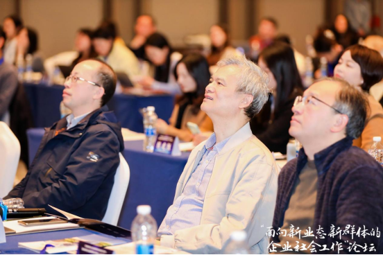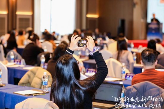中国社会工作教育协会企业社会工作专业委员会顾问张默在致辞中表示,企业社会工作应积极主动回应经济组织、新社会组织、新就业群体,强化为“三新”提供专业化服务,助力社会治理体系与治理能力现代化。浙江省微笑明天慈善基金会秘书长申屠媛艳在致辞中认为,此次论坛把政学企社链接在一起,搭建了一个交流的平台,推动了企业社会工作的创新.