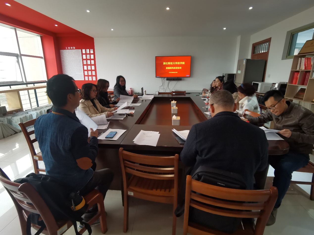 公司党委书记朱丹带领各系、各办公室认真学习了《关于加强和改进新时代师德师风建设的意见》《新时代高校教师职业行为十项准则》《yl23411永利官网登录建立健全师德师风建设长效机制实施办法》等文件,引导教师对师德师风问题知敬畏、存戒惧、守底线。