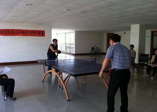 赛事分教职工友谊赛和师生对抗赛两阶段,单打,团体两种比赛形式。在分工会和分团委的鼓励下,教师、员工同学积极踊跃报名。第一阶段进行的是教职工友谊赛,分成男子组和女子组,以循环赛的形式,最后角逐出5名优秀选手进入第二阶段,与5名员工进行师生对抗赛。