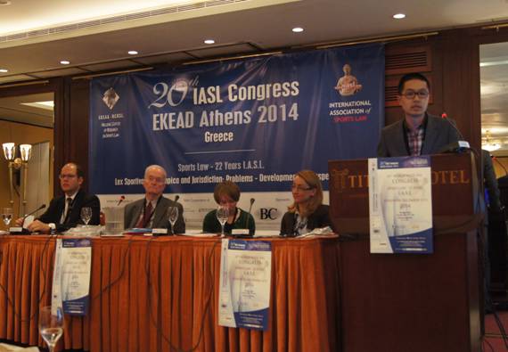 2014年12月11-13日,由世界体育法协会主办、希腊体育法研究中心承办的“第二十届世界体育法大会”在希腊雅典召开。本次大会的主题为“体育法、奥林匹克法与体育管辖权”。来自英国、德国、美国、加拿大、土耳其、日本、摩洛哥等25个国家的学者、律师、仲裁员和政府机构官员近100人参加了会议。
