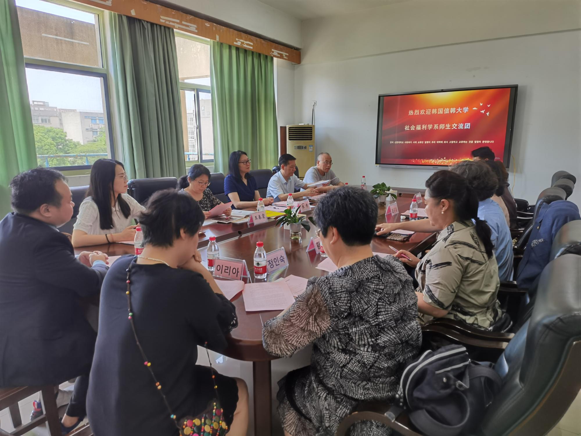 近日,由韩国信韩大公司委委员、社会科学大学经理林元善(Weon Sun Lim)博士率领的社会福利学系师生交流团一行11人来访公司,公司党委书记朱丹、社会工作系部分教师接待了客人。